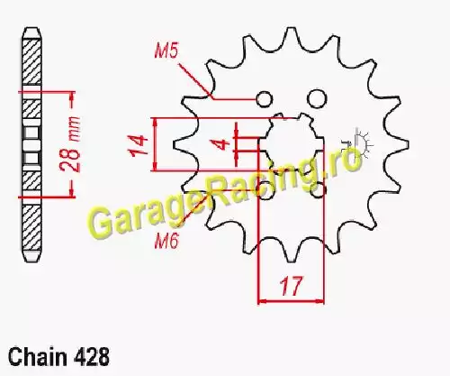 Pinion față Derbi 125 Terra Adventure (2007-2014) - 14 Dinti, Tip 428