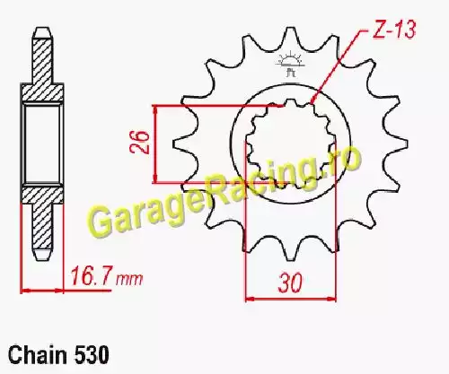 Pinion Fata Honda VTR1000 SP-2 SC45 (2002-2006) - 16 Dinti, Tip 530