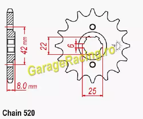 Pinion față Honda XR500 RB, RC (1981-1982) – 14 Denti, Tip 520