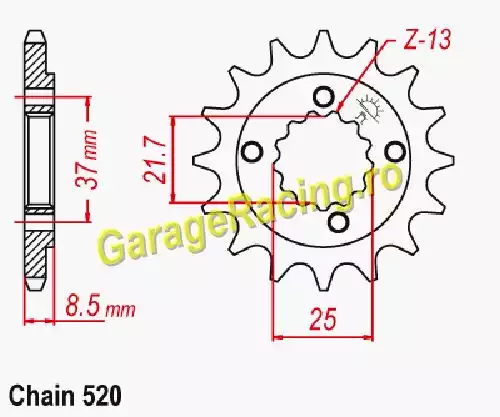 Pinion Fata Honda TRX400 X (2013-2014) - 14 Dinti, Tip 520