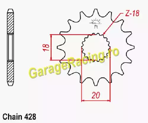 - Caracteristici tehnice: 14 dinți, tip 428