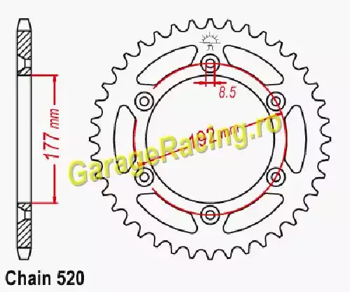 Pinion spate Husqvarna 400 / 430 CR (1981-1983) - 53 Dinti, Tip 520