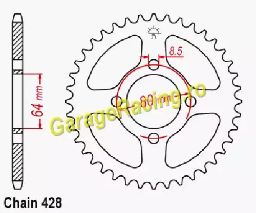Pinion spate Yamaha RX100 (1983-1994) - 37 Dinti, Tip 428
