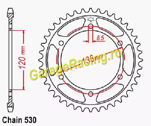 Pinion spate Yamaha FZ600 (1987-1989) - 45 Dinti, Tip 530